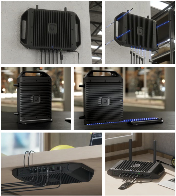 Industriële installaties volgen zelden een standaard blauwdruk. De Cloud Gateway Industrial is daarom voorzien van een Transformable Deployment System: een modulair systeem waarmee je hetzelfde apparaat kunt plaatsen als desktop, verticaal met standaard, onder een bureau, aan de muur, of in een 19″ rack.