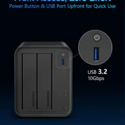 Met twee SATA drive bays kun je eenvoudig een veilige opslagomgeving opzetten met RAID 1 datamirroring voor bescherming tegen schijfuitval. Hierdoor blijven belangrijke bestanden, fotoarchieven en bedrijfsdata veilig opgeslagen binnen je netwerk.