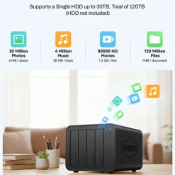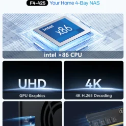 Met vier SATA-drive bays bouw je eenvoudig een betrouwbare RAID-opstelling voor data-bescherming, terwijl M.2 NVMe-slots zorgen voor extra cache-prestaties bij intensieve workloads. De dubbele 2.5GbE-netwerkpoorten maken de F4-425 uitermate geschikt voor snelle werkstations, videobewerking en meerdere gelijktijdige gebruikers.