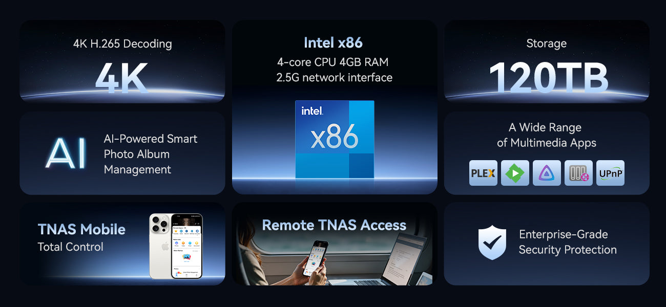 Het TerraMaster TOS-besturingssysteem biedt een overzichtelijke interface met ondersteuning voor snapshots, cloud-sync, Docker, VM’s en uitgebreide back-upscenario’s. Hierdoor is de F4-425 inzetbaar als centrale opslag, mediaserver, private cloud of applicatieplatform binnen een klein netwerk of thuiskantoor.