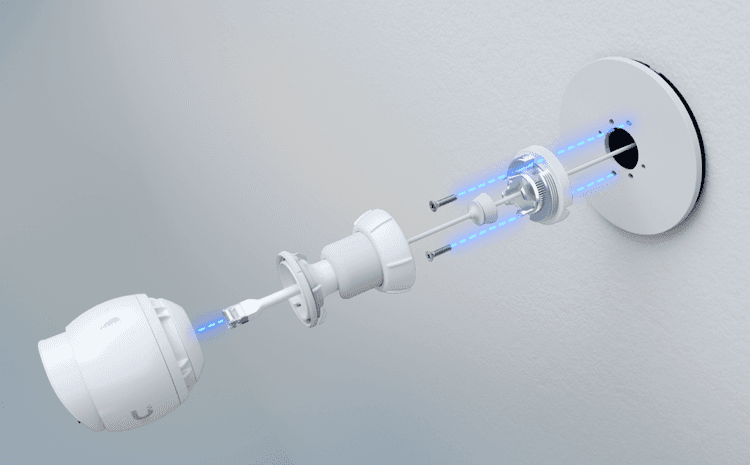 A mounting plate designed to interface UniFi Protect cameras with multiple types of Gang Boxes and Junction Boxes.