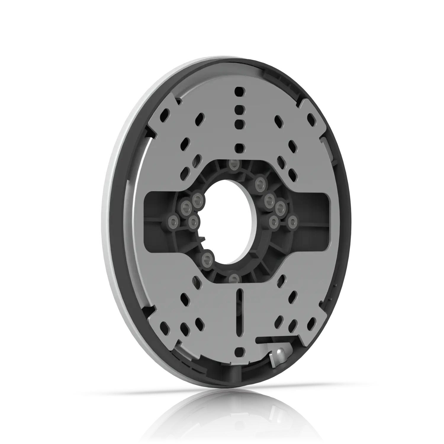 De montageplaat is gemaakt van duurzaam polycarbonaat met roestvrijstalen montagemateriaal, waardoor deze bestand is tegen langdurig gebruik in professionele beveiligingsinstallaties.