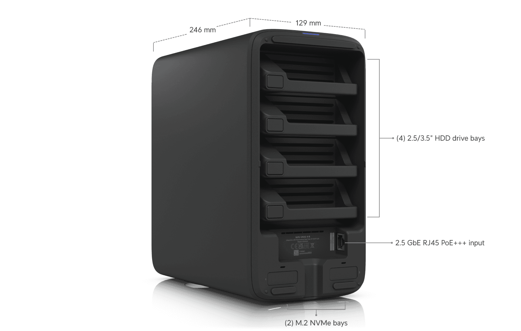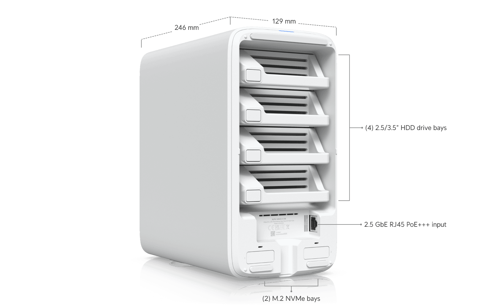 Met vier 3.5″ drive bays biedt de UNAS 4 voldoende capaciteit voor back-ups, mediabestanden en zakelijke data. De combinatie van 2.5 Gigabit networking en optionele M.2 NVMe cache zorgt voor snelle toegang tot bestanden en soepele prestaties bij meerdere gelijktijdige gebruikers.