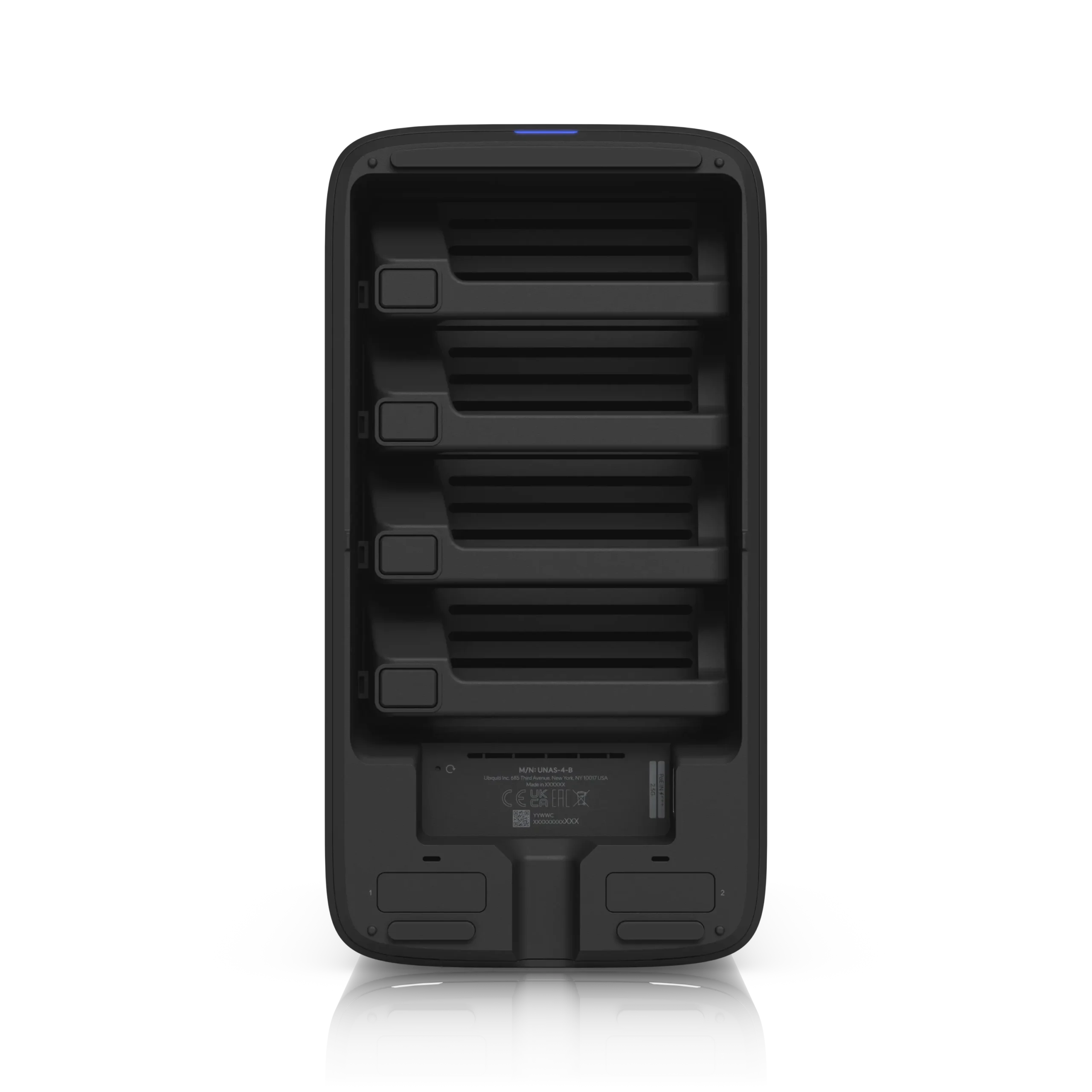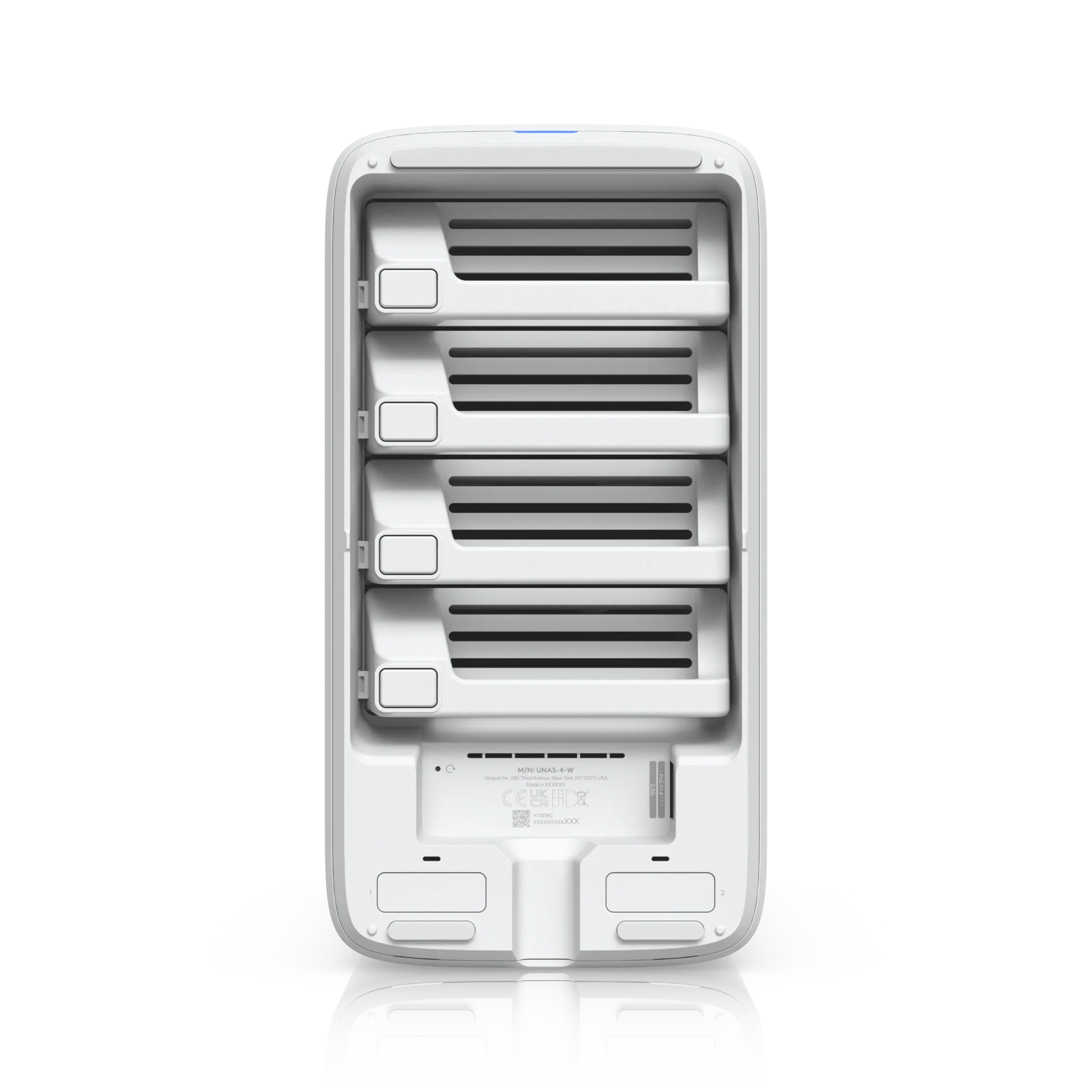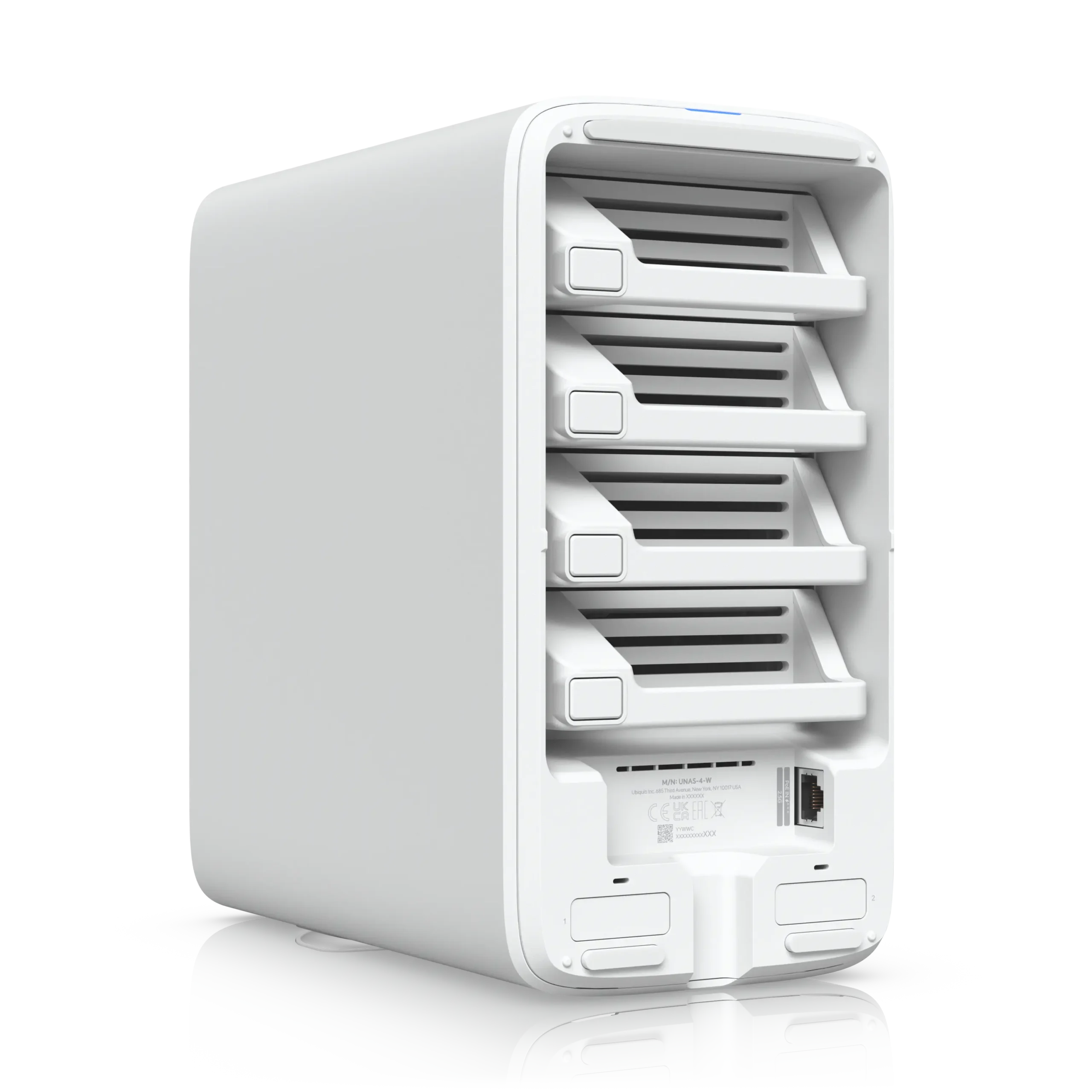 De UNAS 4 is ontworpen in de herkenbare UniFi-stijl en is beschikbaar als variabel product in twee kleuren: UNAS-4-B (zwart) en UNAS-4-W (wit). Hierdoor sluit het systeem perfect aan bij zowel zakelijke racks als moderne werkplekken.