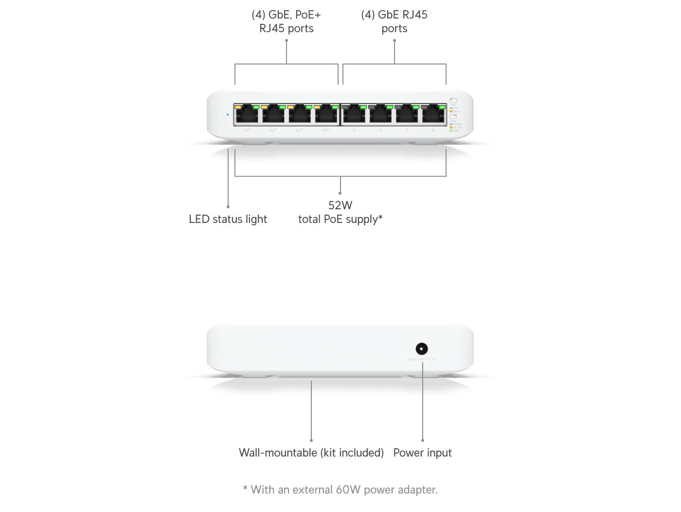 Hij is ideaal voor het voeden van UniFi access points, Protect camera’s en andere 802.3af-apparaten.