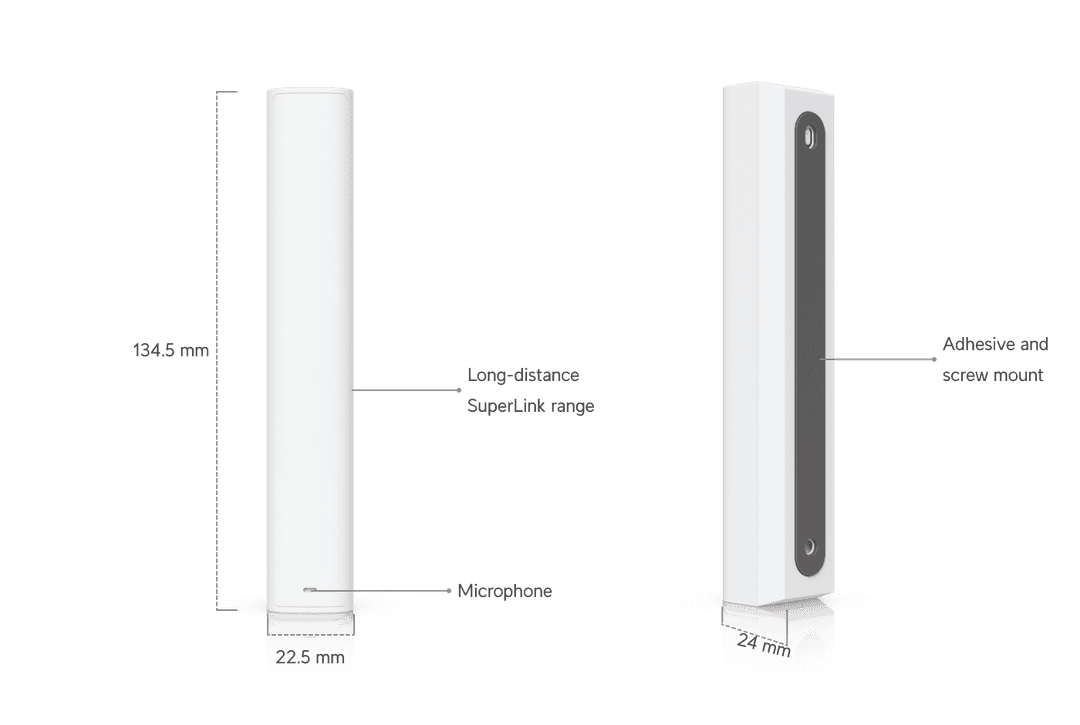 Dankzij de draadloze SuperLink technologie heeft de sensor een bereik tot wel 2 km in open veld. Ideaal voor grotere woningen, bedrijfspanden of meerdere ruimtes zonder bekabeling.